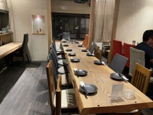横長のテーブル席やカウンター席。
