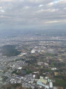 飛行機からの熊本の風景。