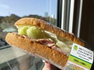 昼は新幹線内でサンドをパクリ。
