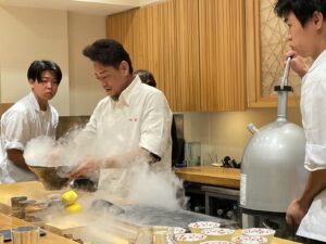 熟したカキを冷凍窒素でかき混ぜてるって感じでしたかね~。