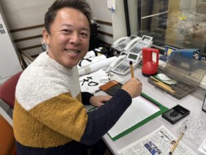 RKKラジオ第一スタジオ恒例の書き初めをしました。