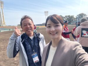 私と後生川アナが何故に球場に?